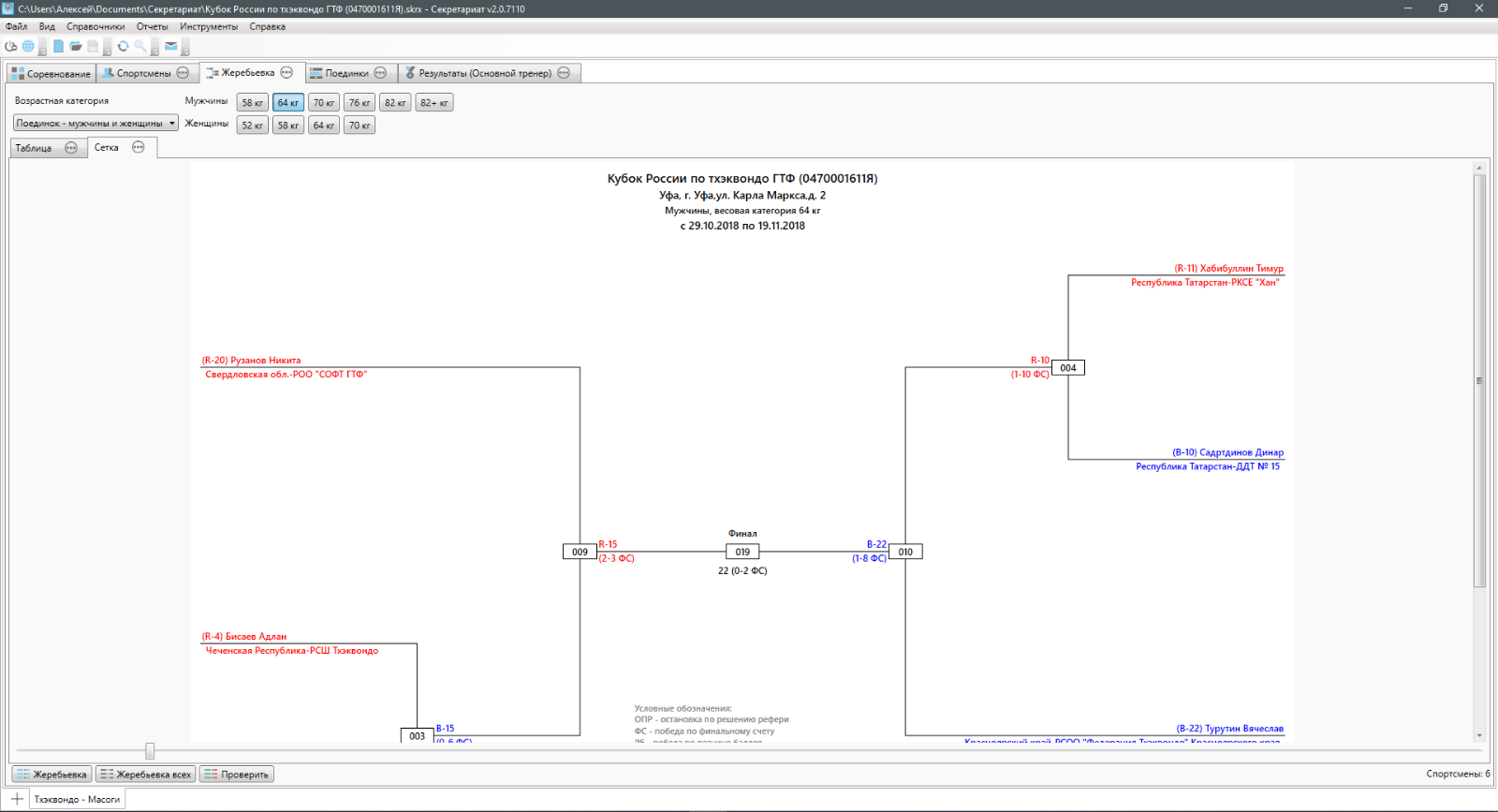 Вы можете получить список поединков из СЕКРЕТАРИАТ 2.0, и после проведения поединков выгрузить обратно результаты.